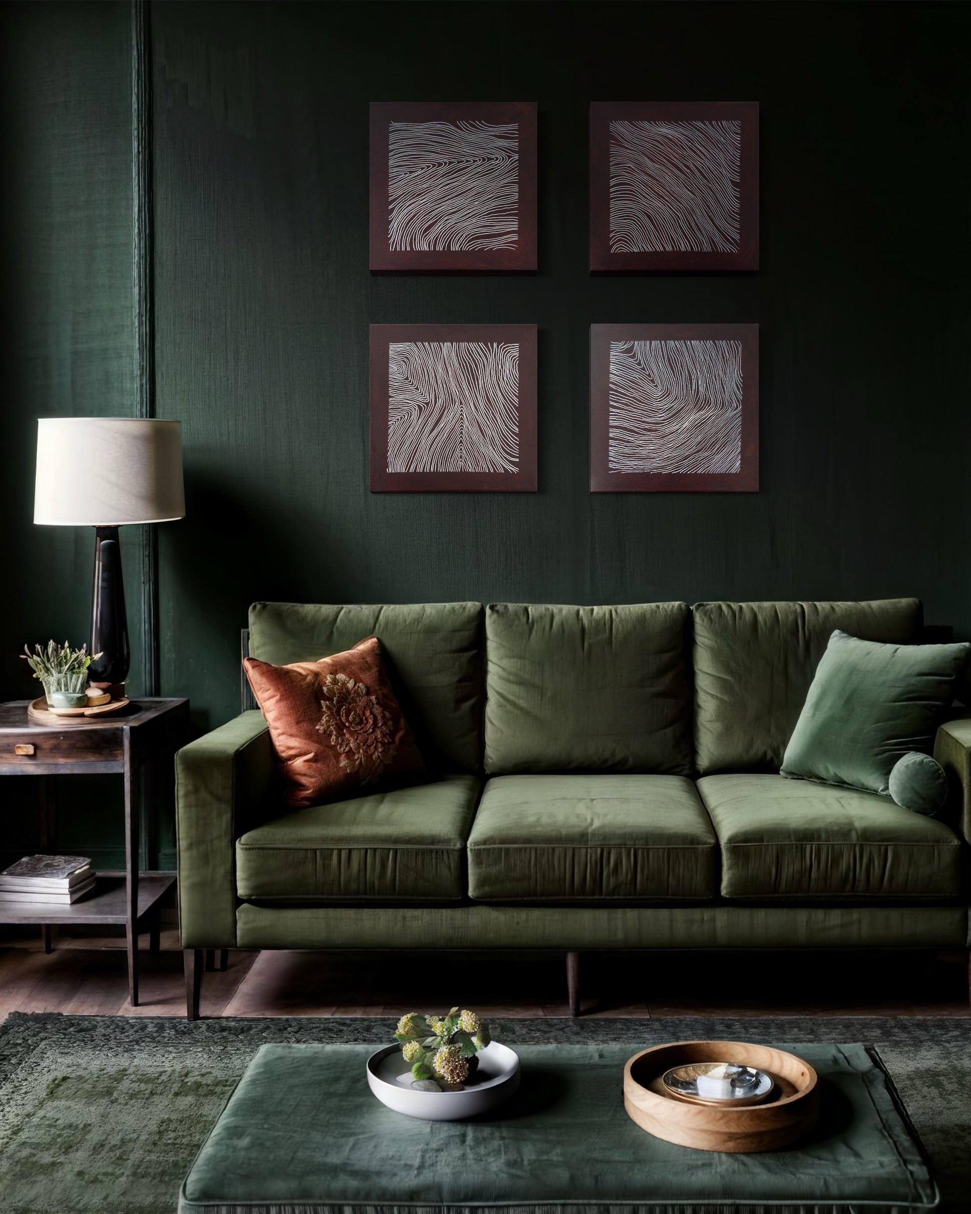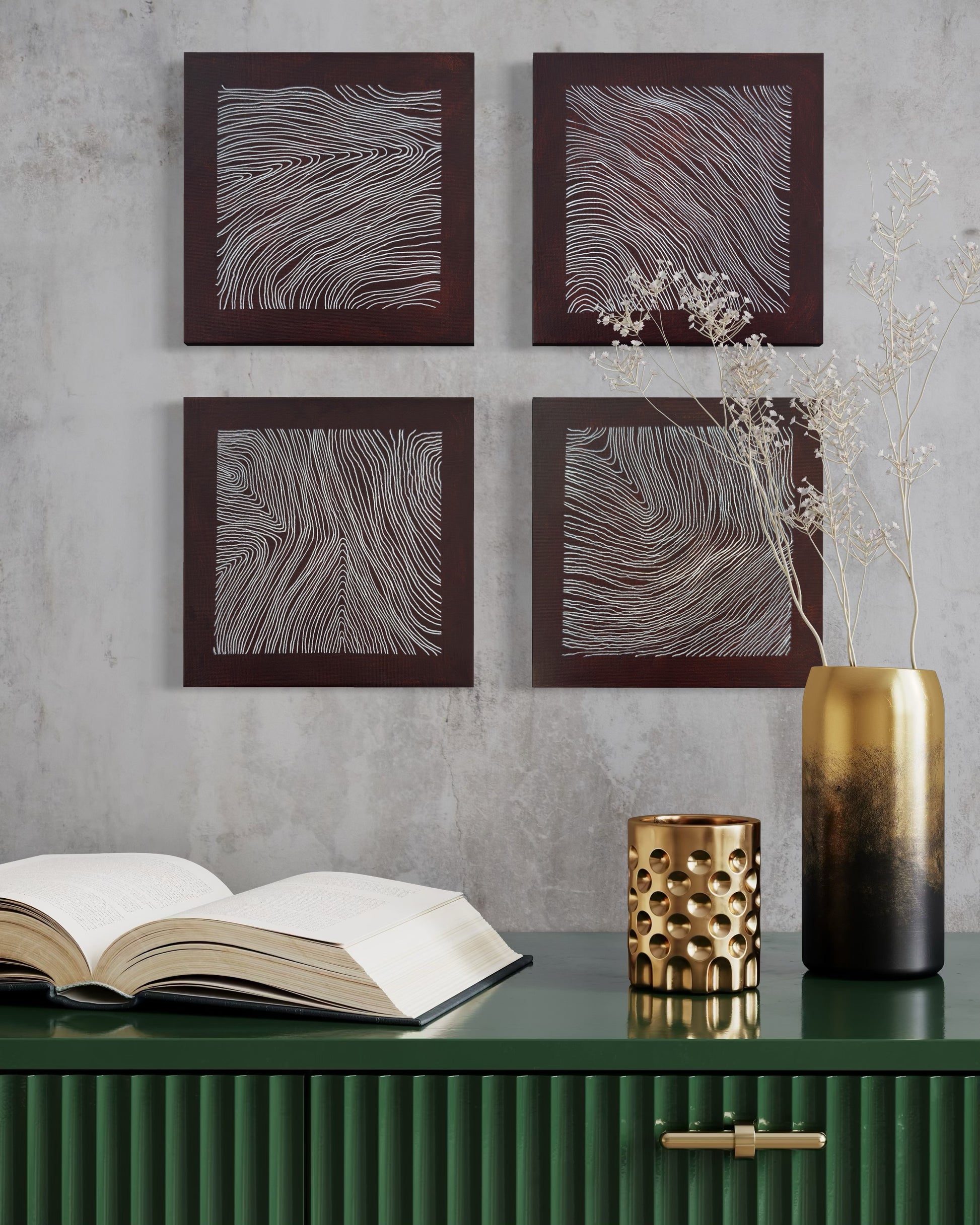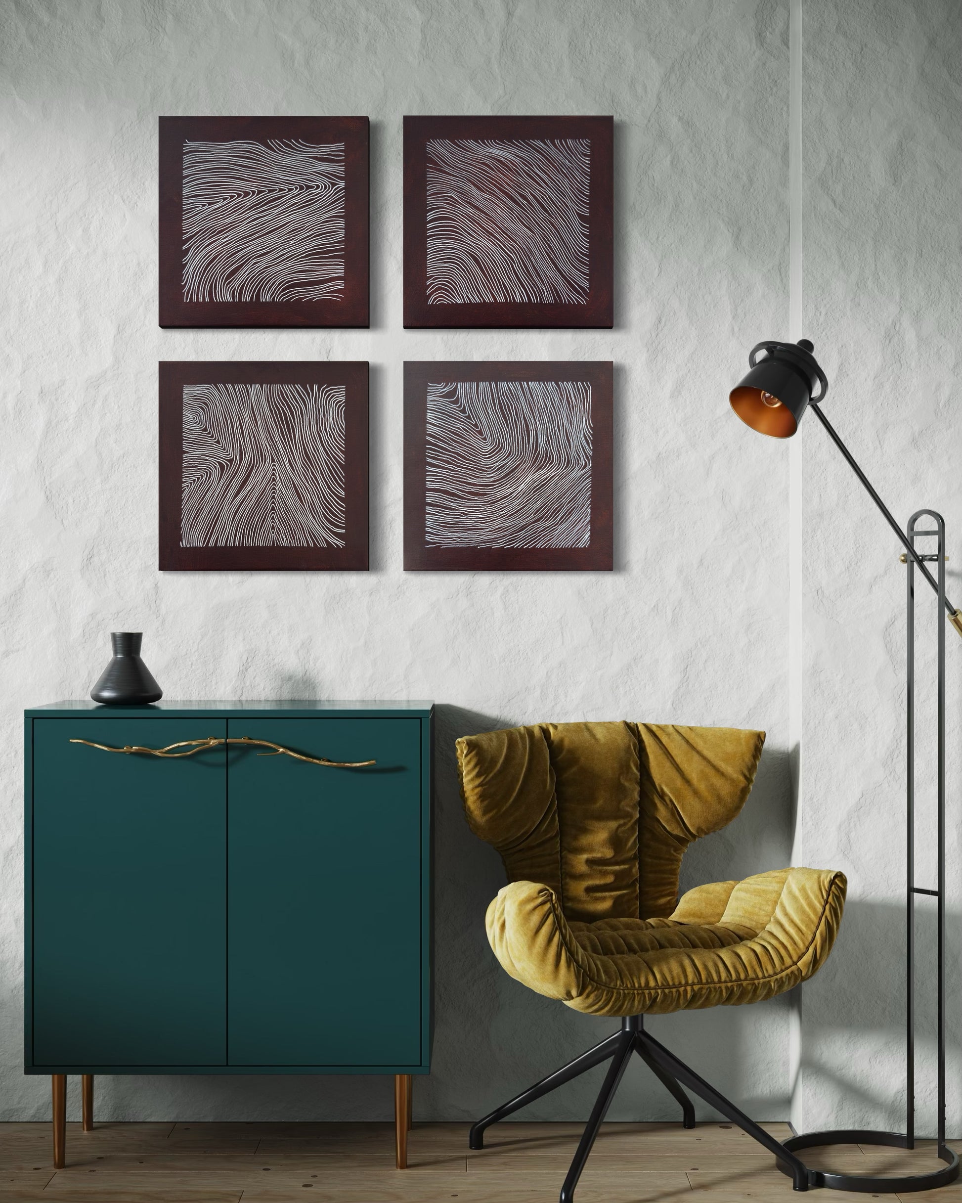 This original abstract painting set is created as a one-of-a-kind work for collectors and architectural interior contexts.