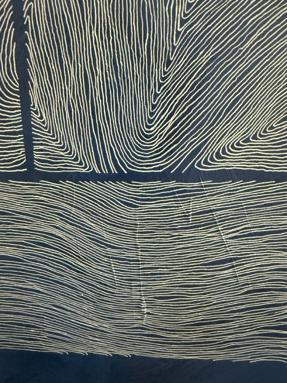 Each section operates independently while remaining structurally interdependent. The lines accumulate density without collapse, creating a surface that resists hierarchy. No area dominates; tension is distributed evenly across the composition.