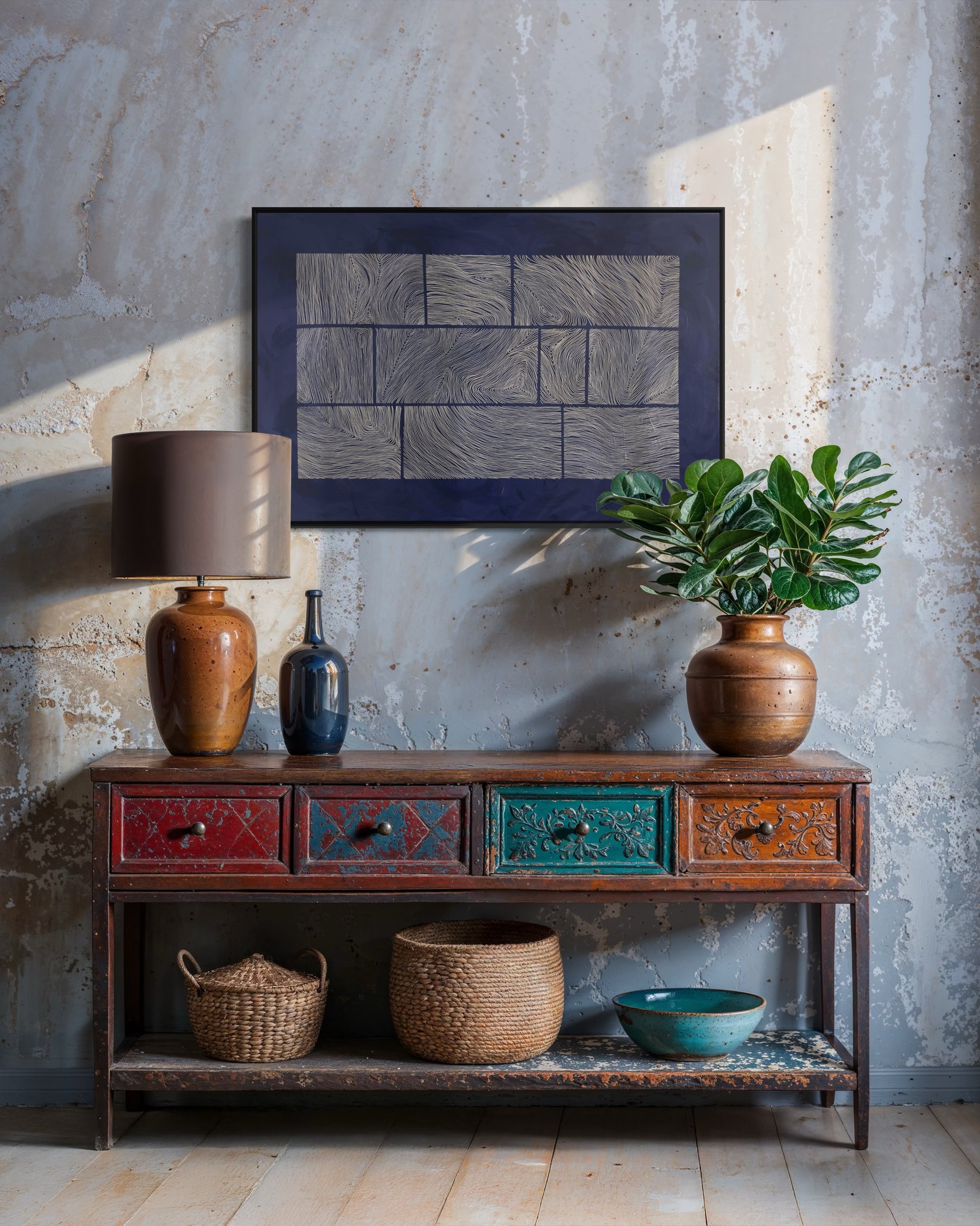 This original abstract painting is created as a one-of-a-kind piece for collectors and architectural interior contexts.